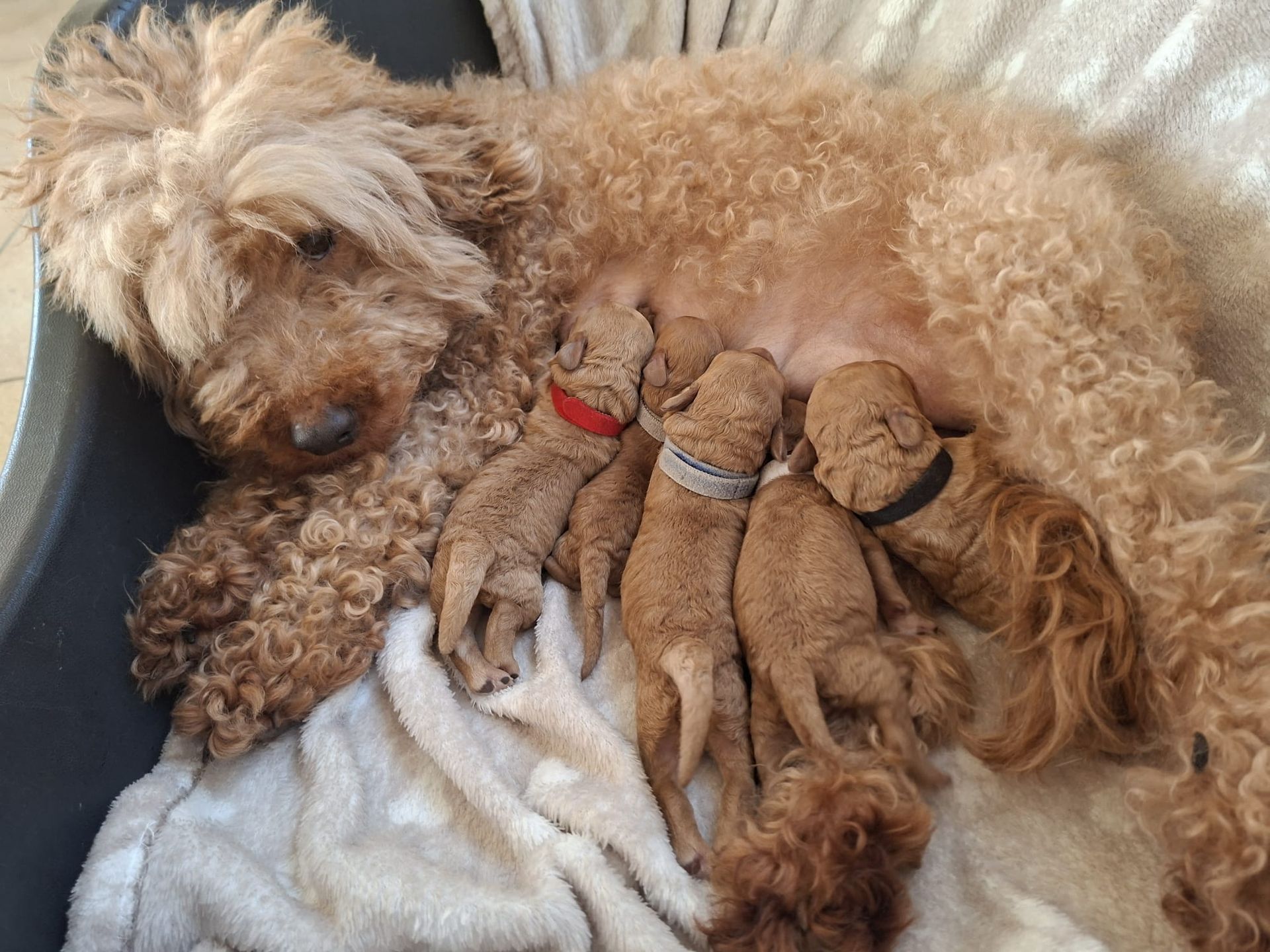 Op dit moment heb ik een nestje prachtige dwergpoedel pupjes. De pups zijn op 3 april 2026 geboren. Het nestje bestaat uit drie teefjes en twee reutjes. Waarvan er nog twee reutjes en twee teefjes beschikbaar zijn.