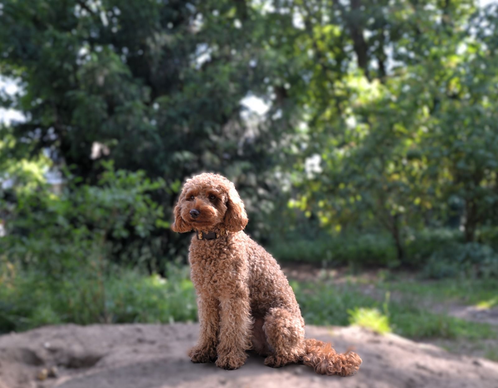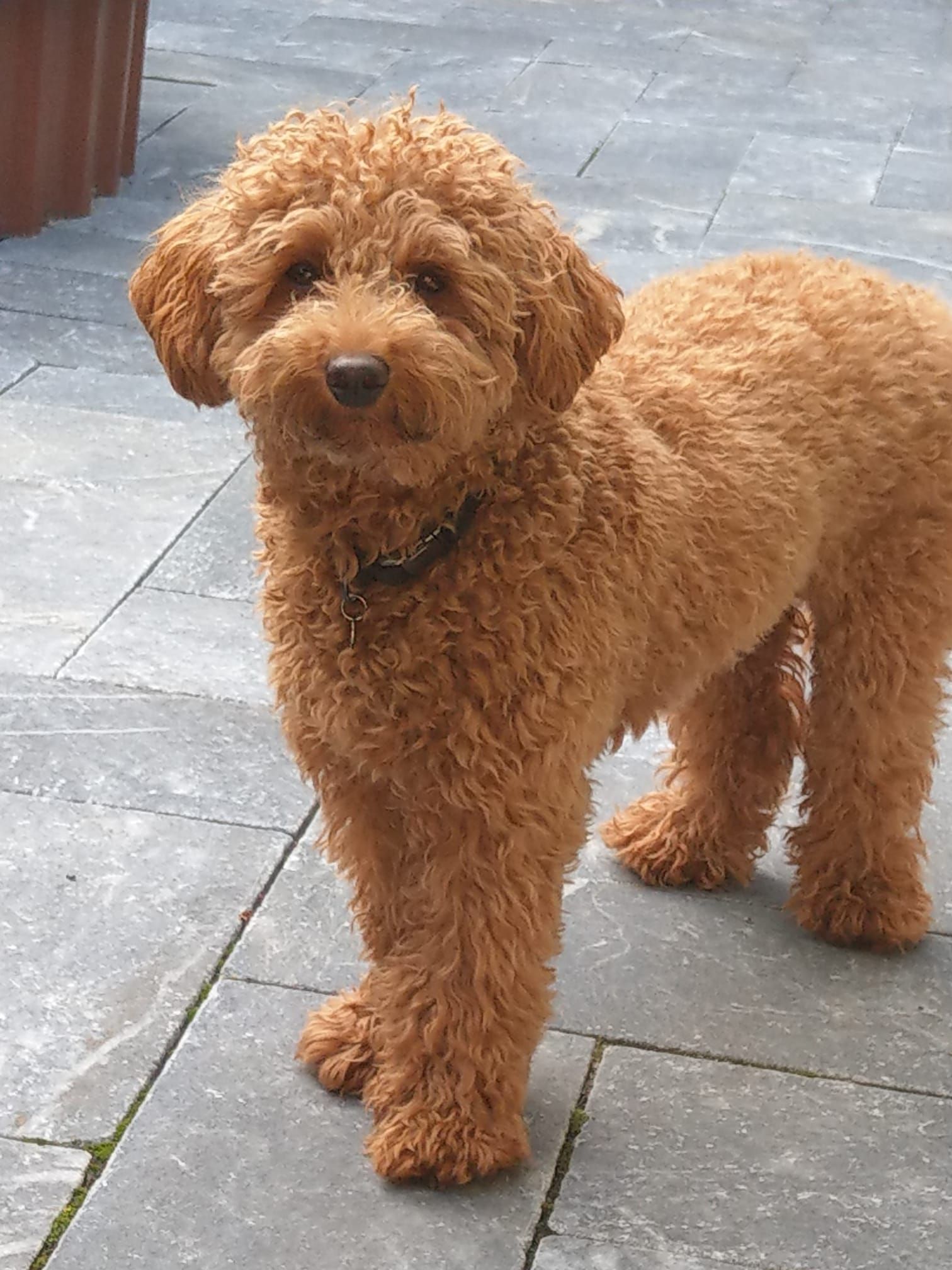 Zoals alle poedelachtigen is ze superintelligent en kun je haar in zeer korte tijd van alles aanleren. Ze vindt het ook leuk om bezig gehouden te worden maar als dat zo uitkomt dan kan ze zich ook prima zelf vermaken en gaat ze rustig ergens liggen met een knabbelbotje of speeltje. Ze richt zich meer op één persoon binnen de groep of roedel. Ze is super trouw en wijkt niet meer van je zijde. Ze heeft een mooie gemêleerde, licht choco / gemêleerde curly vacht. Welke makkelijk te onderhouden is door wekelijks een keer te borstelen.
